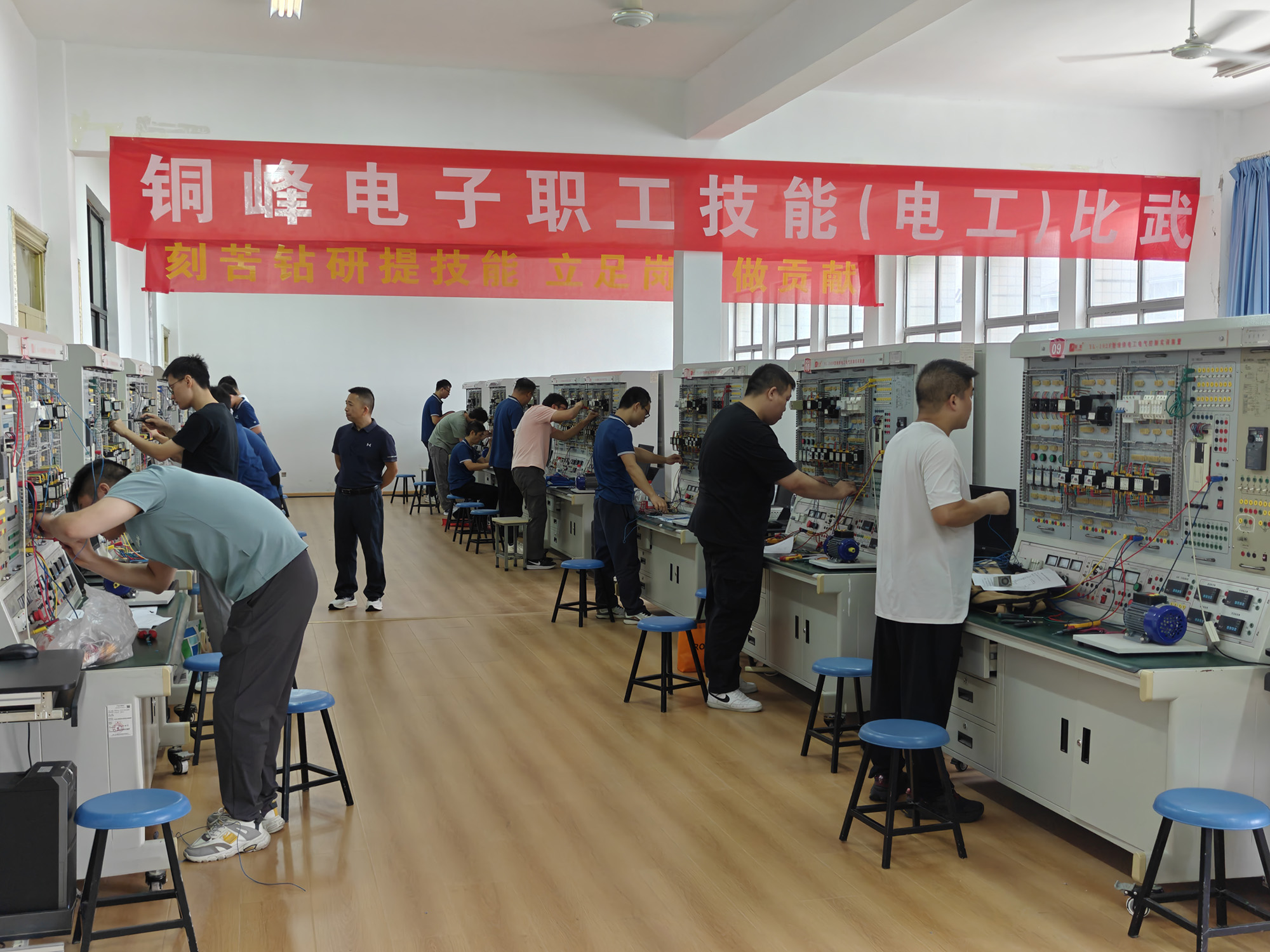 近日,公司2025年度職工電工、叉車工技能比武分別在市中職中心和銅陵職業(yè)技術(shù)學(xué)院舉行。本次比武共有46名選手參賽,圍繞“精準操作、高效作業(yè)與安全規(guī)范”展開精彩角逐。比武的賽制設(shè)計對標職業(yè)技能等級認定標準,分理論和實踐操作兩個環(huán)節(jié),全面展示了公司一線技能型人才的專業(yè)素養(yǎng)與實踐能力。