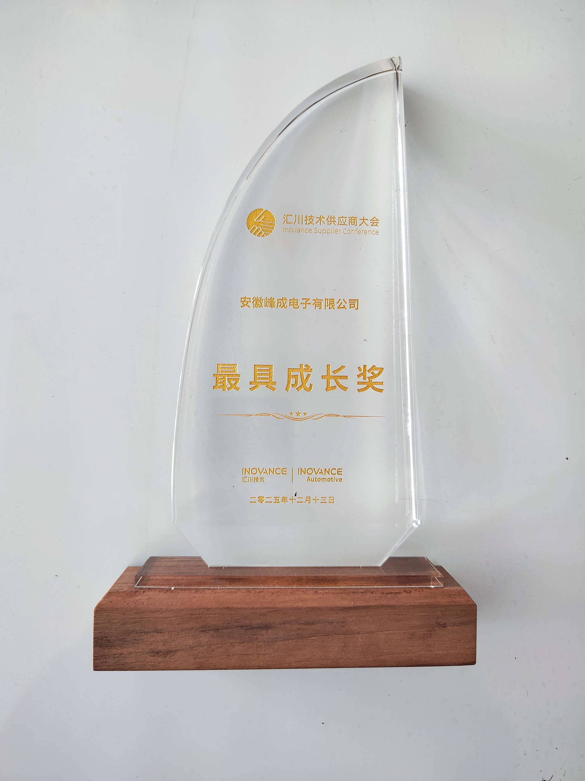 匯川聯(lián)合動(dòng)力是專注新能源汽車電驅(qū)與電源系統(tǒng)研發(fā)的國內(nèi)龍頭企業(yè)之一?!白罹叱砷L獎(jiǎng)”旨在表彰在合作過程中展現(xiàn)出強(qiáng)勁發(fā)展勢頭、持續(xù)創(chuàng)新能力與卓越服務(wù)水平的合作伙伴。此次獲獎(jiǎng),不僅是匯川技術(shù)對雙方過往合作成果的肯定,更是對峰成公司綜合實(shí)力與成長潛力的高度認(rèn)可。面向未來,峰成公司將繼續(xù)堅(jiān)持創(chuàng)新驅(qū)動(dòng),加強(qiáng)新品研發(fā),提升品質(zhì)服務(wù),推進(jìn)雙方互利合作再上新臺階,助力新能源汽車電子產(chǎn)業(yè)的高質(zhì)量發(fā)展。