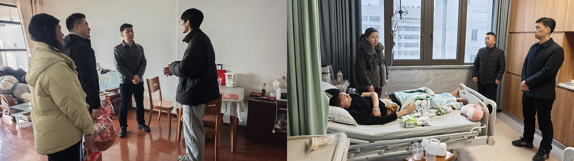 在醫(yī)院病房,公司領(lǐng)導(dǎo)還看望患病住院的困難職工,并送上慰問金。公司領(lǐng)導(dǎo)關(guān)切詢問患者的病情、治療進(jìn)展以及目前身體狀況,叮囑患者要安心養(yǎng)病,放寬心態(tài),積極配合治療,爭(zhēng)取早日康復(fù)。